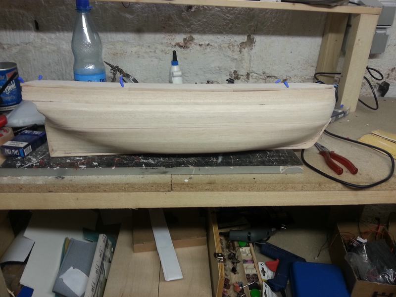 Der Unterwasserrumpf ist bis zur äußeren Öffnung aufgebaut.
