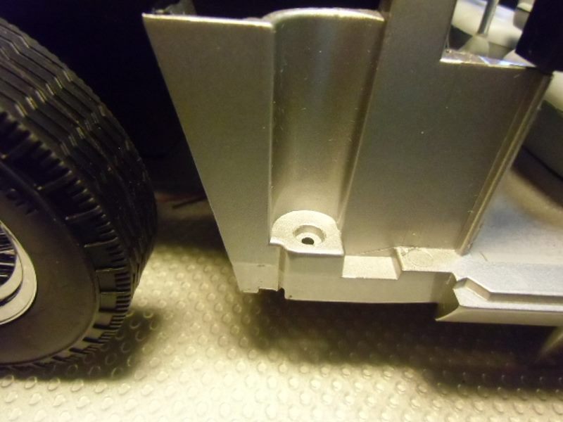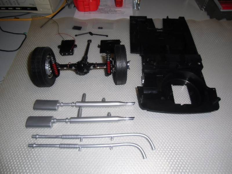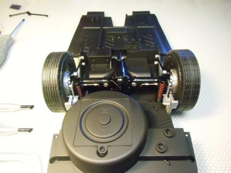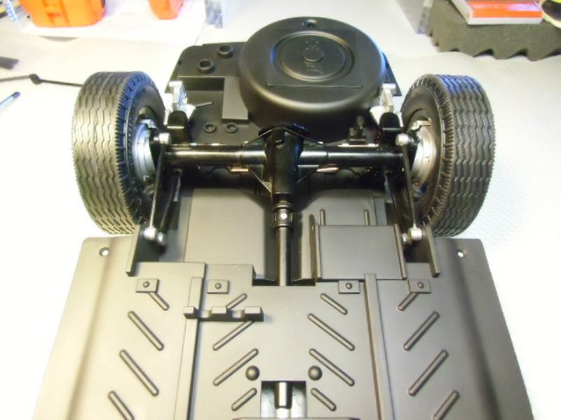 Weiter mit dem komplett fertigen Teil der Chassisgrundplatte aus Plastik mit der Hinterachse und Kardanwelle. (Sektion 4)