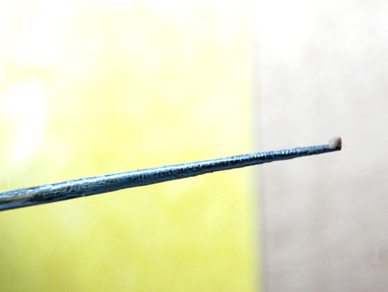 , das ist schon die nächste Methode, die ich mir ausgedacht hatte. Und zwar war der Grundgedanke Magic Sculp so weit mit Wasser zu verdünnen, dass man es vielleicht auch in kleinen Tröpfchen auftupfen könnte. Jedoch wird das Zeug nicht flüssig sonder sieht irgendwie "geronnen" aus, mit kleinen Klümpchen drin. Diese Klümpchen hab ich dann mit einer zugespitzten Nadel rausgefischt...