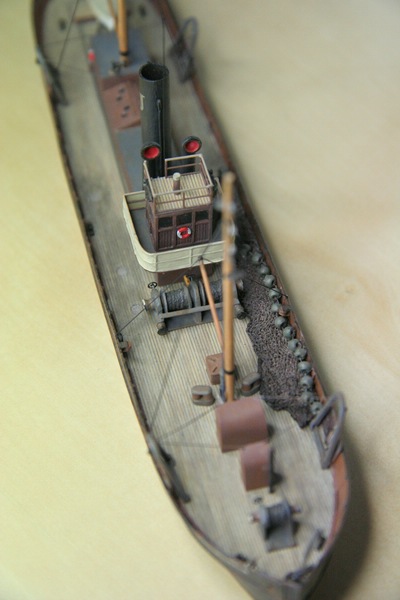 Ich werd's wie bei der "Wilhelm", der "Kinau" oder meinem aktuellen Seitentrawler-Bauprojekt machen, und die Kartonbaubögen als Grundlage benutzen, um das Modell aus Plastikplatten und -Profilen zu bauen. Der Maßstab wird dann zum Rest "meiner Fischereiflotte" passend 1:200 sein...