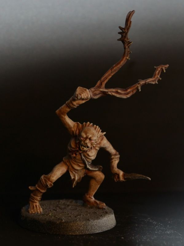 Zum meinem Malen: die Goblins wurden grundbemalt. Sieht man an den Unfertigen. Komplett erstmal überall ne grundfarbe setzen. Hautfarbe der goblins, lederriemen, lendenshorts etc. Dann kommt ne runde washparty darauf. Da ich keine lust hab 40 gleiche gobluns zu haben sund es 4 verschiedene. So kommt abwechslung rein. Nach dem wash nochmal mit hautfarbe erste highlights. Und danach ....... kreide :). Ne quark. Hab trockengemalt. In der heftigen vergrösserung sieht das übel aus. Dieser teil des anmalens is für die zukunft eher nicht zu gebrauchen. Aber kommt zeit kommt übung. Und Schlaf :)