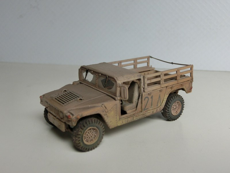Dieser Humvee ist einer von 10, die ich bisher gebaut habe. Dieser hier datiert aus 2008. Ich hatte erst 2 Jahre zuvor begonnen Modelle zu bauen und es fehlte damals noch an Übung. Ich hatte aber bereits am Anfang begonnen Zurüstteile zu verwenden, da ich schon damals mit OOB nicht konnte. Die Bausätze sind einfach nicht so vollkommen, wie ich sie mir Wünsche, wobei Dragon schon einiges zu bieten hat. Verwendet habe ich einen PE Satz von Eduard. Lackiert wurde erstmals mit der Airbrush, damals noch mit Gunze Farben. Das Weathering habe ich mit einfachen Ölfarben gemacht. Leider will mir nicht mehr einfallen, was ich zum Verschmutzen verwendet habe. Heute würde ich einiges anders machen, vor allem die Spiegelaufhängungen sind viel zu dick. Warum ich dieses alte Schätzchen jetzt wieder ausgegraben habe, nun ja, beim Militär tut sich hier auch nicht gerade viel und HMMWV's gibt's kaum mal zu sehen. Eigentlich wollte ich mal ein Baghdad Diorama bauen, leider hab ich dazu zwar viel Material aber noch keine Muse gehabt. Kommt aber mal noch.