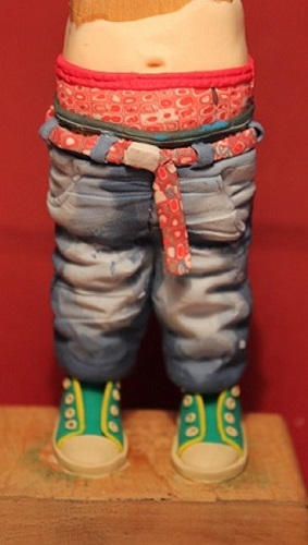 Noch Tunnel in die Ohrlöcher, Haare aufmodellieren, so kann die Figur zum härten in den Ofen.