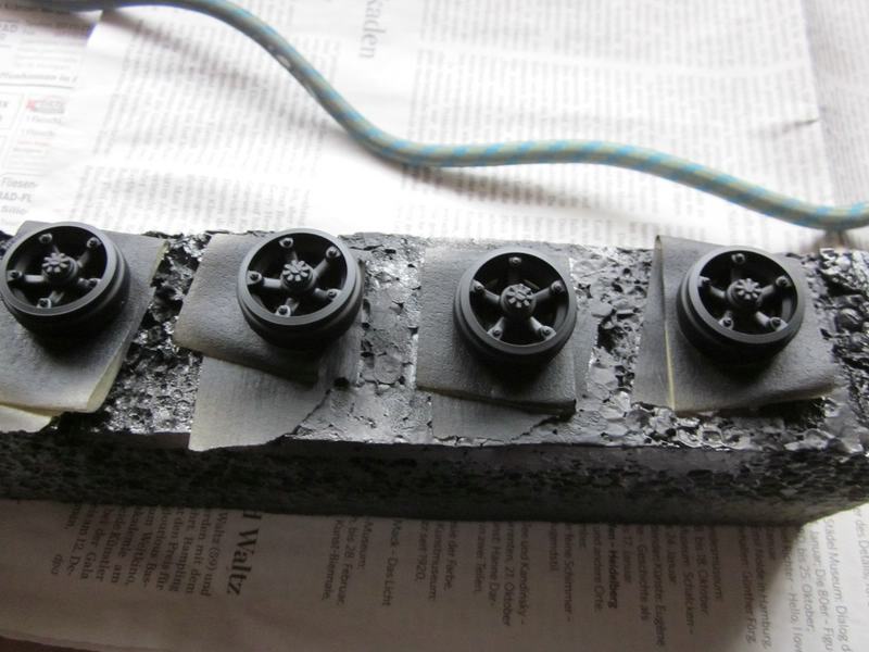 Zuerst wurden die Reifenteile für's lackieren vorbereitet. Normalerweise lackiere ich komplette Baugruppen. Da ich mir nicht sicher bin, ob man dann