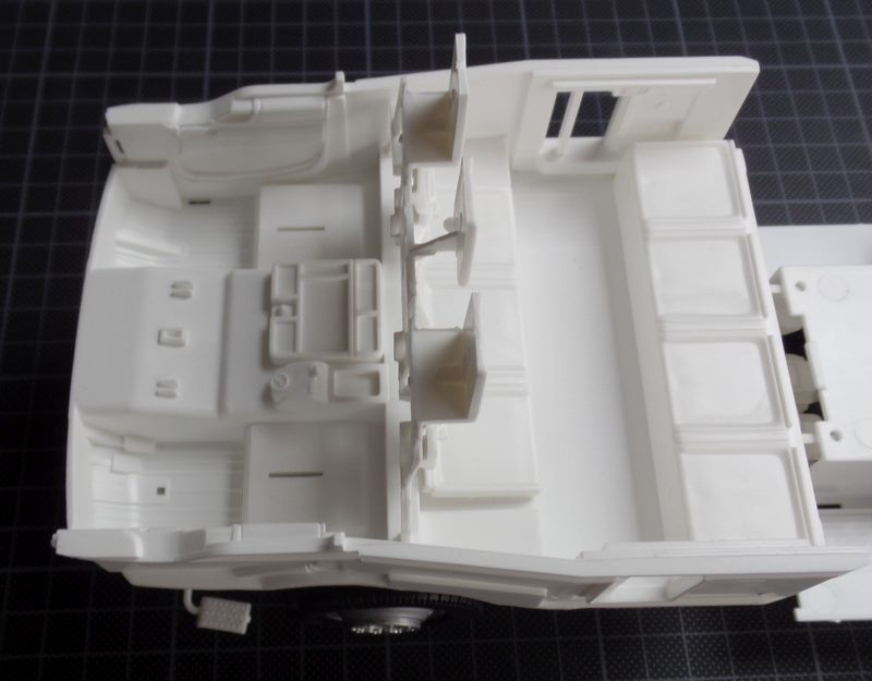 Allerdings habe ich zwischenzeitlich ein wenig an der Inneneinrichtung der Kabine gemacht und etwas Riffelblech eingebaut.
