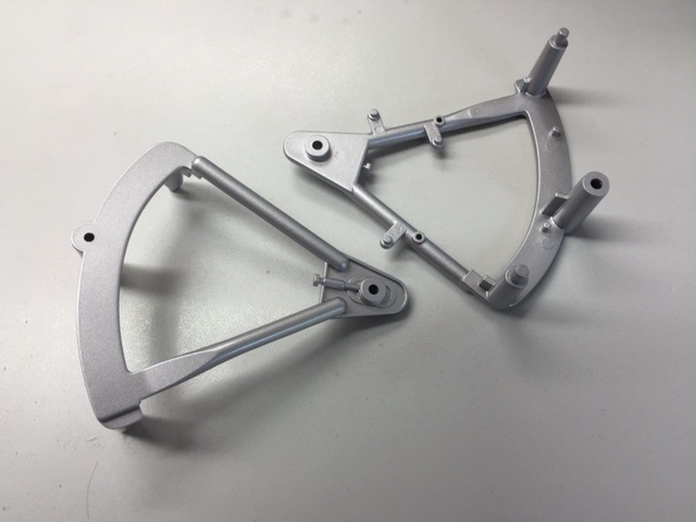Zum Beispiel aus deiner letzten Lieferung das Umlenkblech. Das ist eigentlich nur eine Verlängerung des Kotflügels. Ist an der Vorderseite der Schwinge befestigt, damit da nicht so viel Dreck ans Getriebe fliegt. Das Teil ist Original schwarz und aus Plastik!!