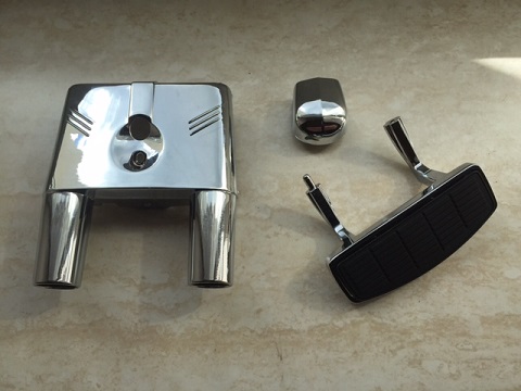 Dann die Blinkergehäuse: Original aus Plastik und verchromt so wie auch die Chromteile im Modellbau.