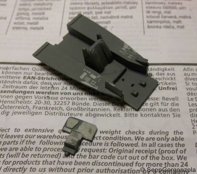 Ich habe den Sitz und die seitlichen Konsolen montiert. Leider ist mir erst danach aufgefallen das Decals für die Konsolen und die Gerätetafel vorhanden sind - also alles noch mal abgeschliffen :bang: