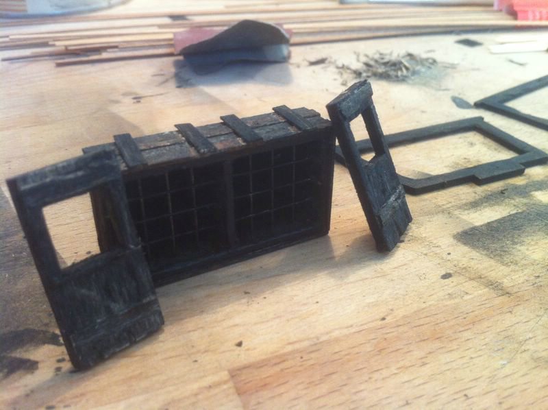 Hab heute angefangen die Türen weiter zu bauen und das erste Regal. Erst mit feinen Leisten beklebt und danach kam die Alterung dran.