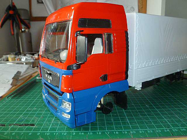 Die Lackierung sieht klasse aus. Der Klarlack kommt super rüber. Bin schon auf die Planenaufbauten gespannt.