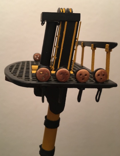 habe mit diesem begonnen. Dass heisst schön verjüngt und ockergelb gestrichen. Schwarze Seile drumrum gewickelt und den oberen Bereich erstellt.