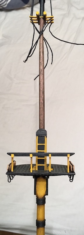 Ach um Verwirrung oder so vorzubeugen, der Grossmast hat eine Neigung von 3°oder bissle mehr, der Fockmast eine nicht sichtbare -1°. Ist wichtig für die Montage auf dem Schiff, irgendwie sind die Masten immer schräg angebracht. Kenne mich da auch nicht aus.