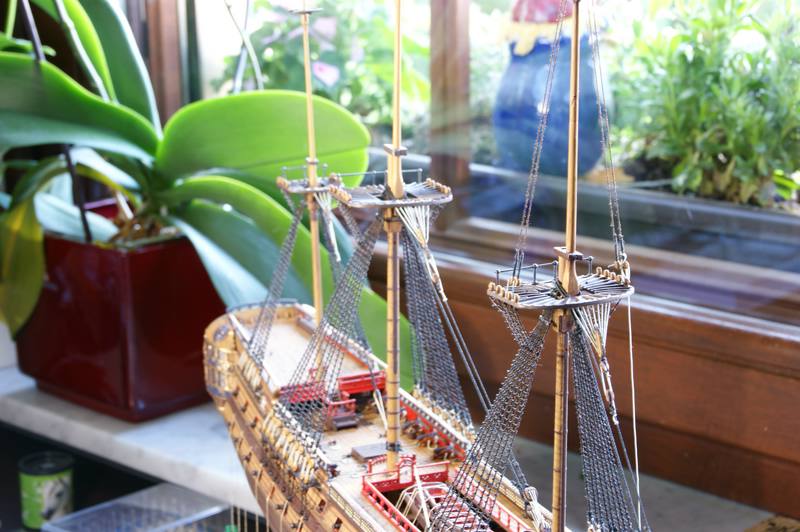 Ja, das stimmt. Ich werde mit den Pardunen versuchen das auszugleichen. Ich habe während des Baus bemerkt, dass keine einzige Strippe die ich bisher gezogen habe einer anderen gleicht. Manches Seil war einen Millimeter zu lang, dann kam alles in Schieflage. Da ich aber die noch zu setzenden Stage und Pardunen ordentlich verspannen will, kann ich es versuchen auszugleichen, so der Plan.Auf Deinem vorletzten Bild sieht es allerdings so aus, als wenn der obere Teil des Hauptmastes im Vergleich zum Besan etwas zu sehr nach backbord gespannt ist.