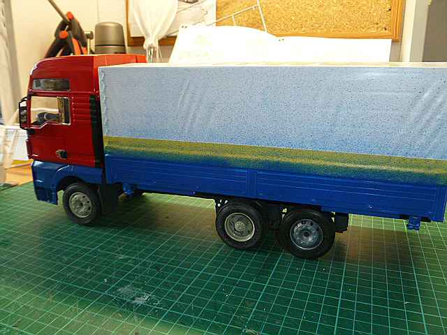 Die Lackierung sieht klasse aus. Der Klarlack kommt super rüber. Bin schon auf die Planenaufbauten gespannt.