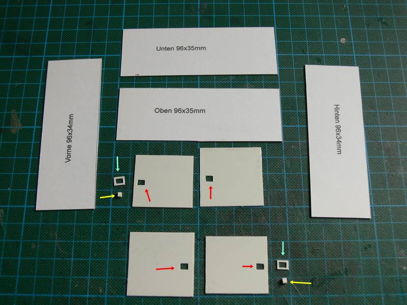 Daraus ist dann wieder eine Bauteile Druckvorlage entstanden, die ausgeschnitten und auf 0,5mm Sheet geklebt wurde.
