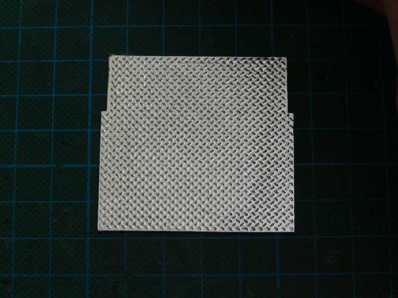 Daraus habe ich mir zwei Teile zugeschnitten, so das es später wie Klappen mit Griff aussieht. Die Teile habe ich von hinten, mit einem Stück Sheet verbunden, die Maße dazu gab der Kasten am Aufbau vor, so entstand zwischen den Teilen eine 1mm breite Lücke.