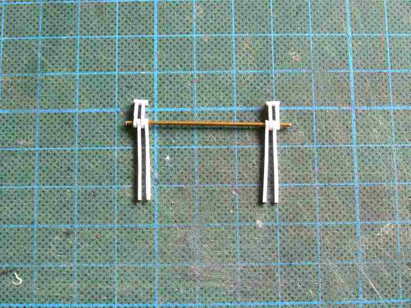Nun wurden die Teile auf eine 1mm Messingstange gesteckt, die mir zunächst zum ausrichten, beim verkleben der Teile dient, so wurden dann zuerst die kleinen, unteren Teile mit einander verbunden.