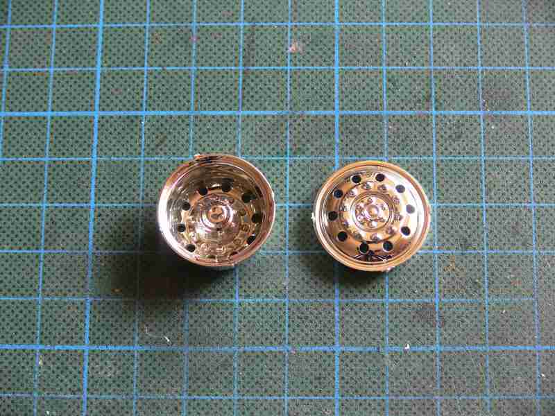 Die zwar sehr schönen und auch gut verchromten außen Felgen, vom Mack Bausatz, kann ich so leider nicht übernehmen, mein „kleines Vorbild“ hat ja andere.
