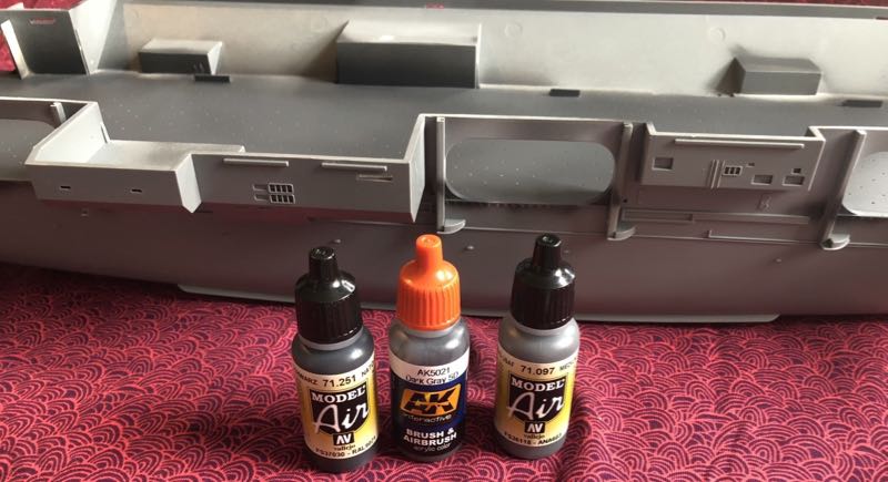 So ein blaues Artwox-Deck habe ich bei meiner BB-35 Texas verwendet, sieht auch ganz gut aus, aber die Echholz-Optik hat doch gelitten. Für ein Schlachtschiff würde ich es auch wieder verwenden, aber bei einem Träger hat es 2 Nachteile: Man sieht rundum die Kante, 0,21mm können eine ganze Menge sein, und die Zurrleisten sind zwar eingeprägt, sehen aber lange nicht so markant aus wie bei einem gut gemachten Plastikdeck.