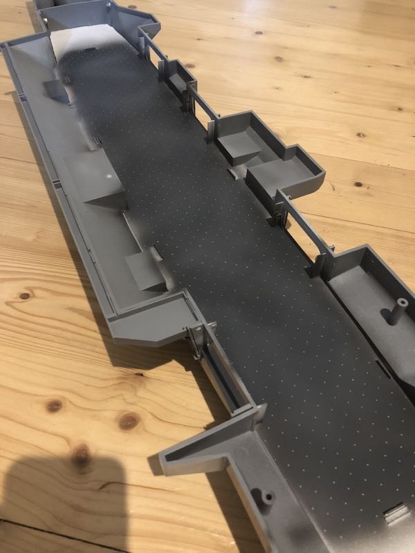 Ein bisschen ärgert ich aber noch der Spalt zwischen Wand und Boden auf der linken Seite. Mir ist nur noch keine praktikable Lösung eingefallen, wie ich das unsichtbar machen kann. Spachteln wird in der Ecke, denke ich, keine optische Verbesserung bringen Schöne Scratchorgie, wofür kaufst Du eigentlich noch Bausätze?