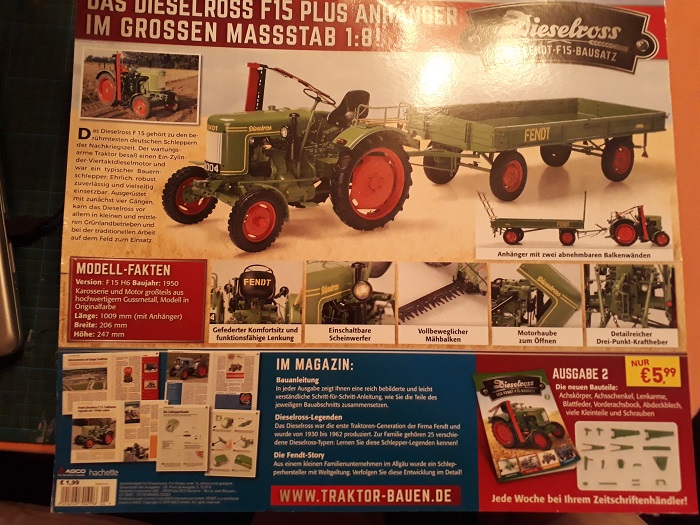 und statt den ewigen Grubber, endlich einen schönen Anhänger beigegeben. Die Serie ist auf 130 Ausgaben ausgelegt. Für Abonnenten gibt es einen großen Farbtopf gratis dazu.