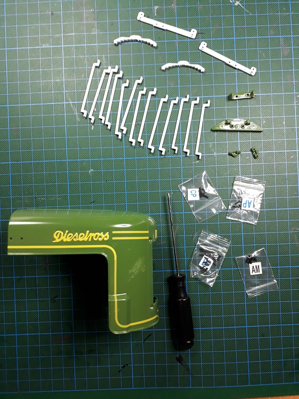 z.B. die Befestigungsplatte 1F, die mit der Schlepperhaube 1A verbunden werden muss. Kaum eine Schraube habe ich richtig fest drehen können, da wackelt und klappert alles.