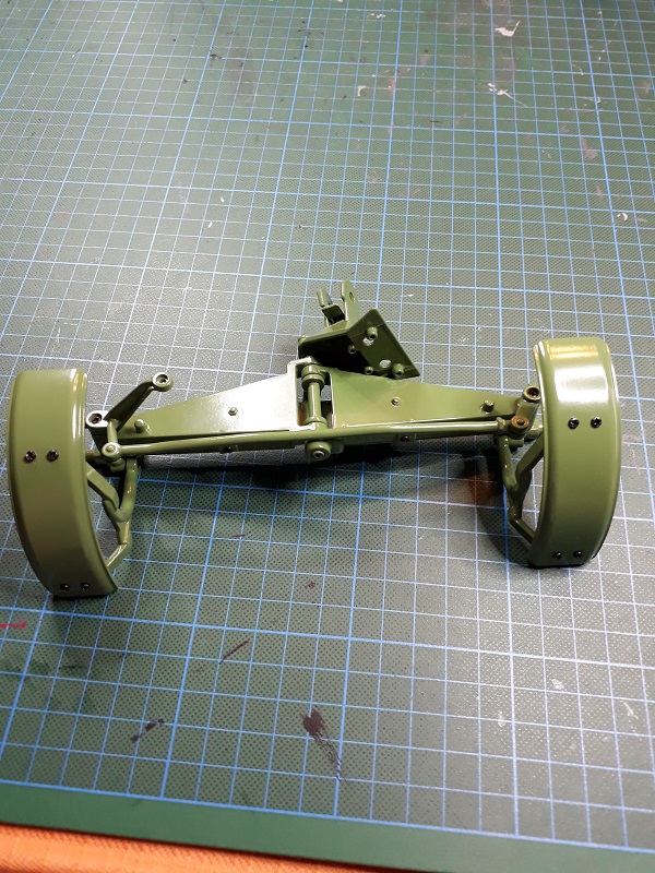 stehen bleibt. Sobald das zweite Vorderrad erscheint, werde ich beide zusammen anbauen und die eine Radaufhängung mittels Sekundenkleber fixieren.