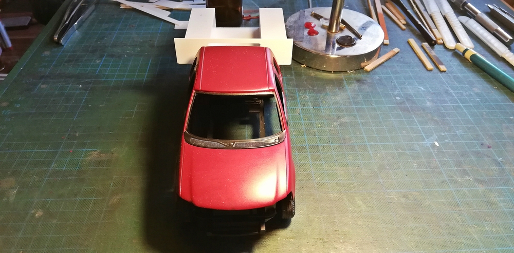 Das musste erst noch verschliffen und neu lackiert werden, das heißt nun aber auch das sich die weiße Lackierung, etwas verzögert. Aber für eine Stellprobe, hat es am Mittag, dann schon noch gereicht.