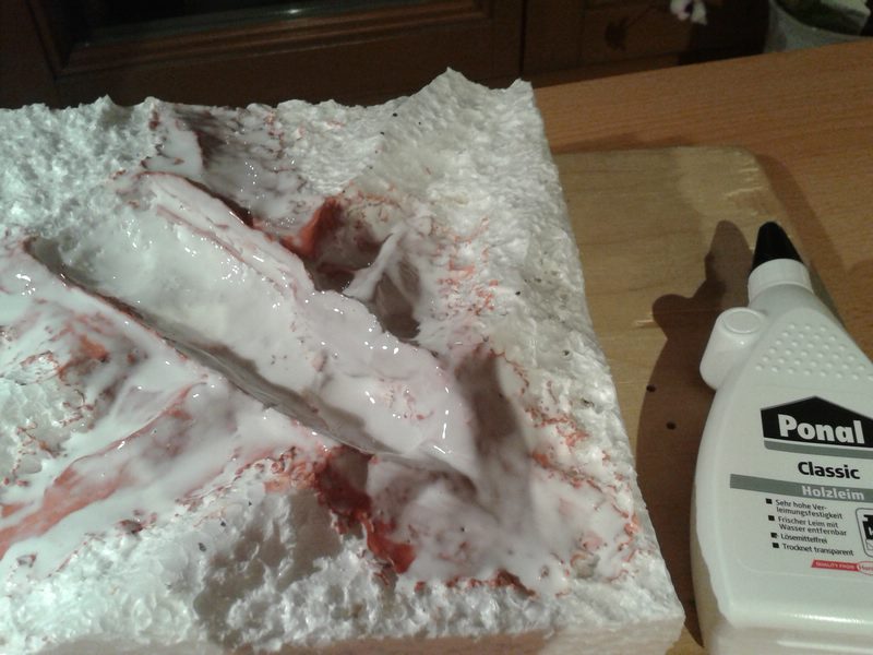 Dann habe ich eine Styroporplatte zugeschnitten und mehrere Hauptwellen