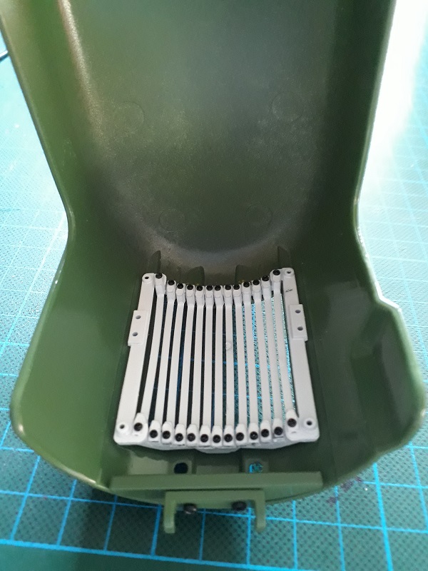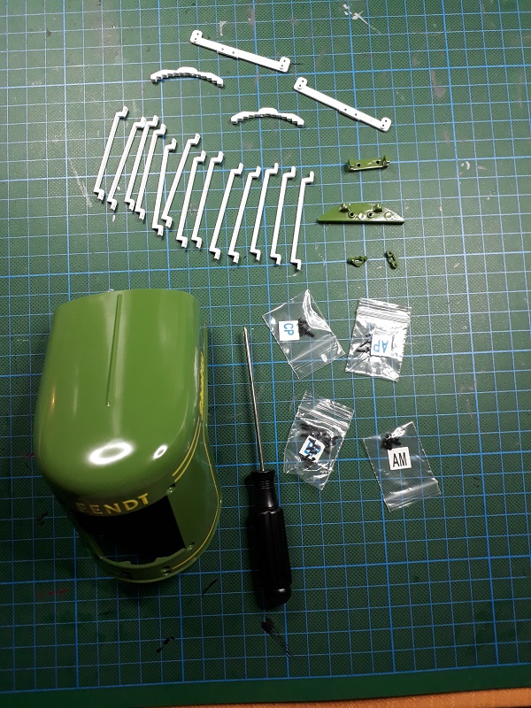 z.B. die Befestigungsplatte 1F, die mit der Schlepperhaube 1A verbunden werden muss. Kaum eine Schraube habe ich richtig fest drehen können, da wackelt und klappert alles.