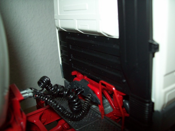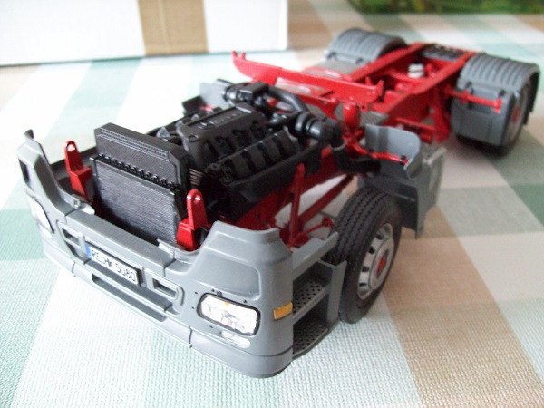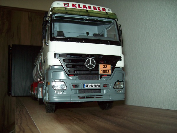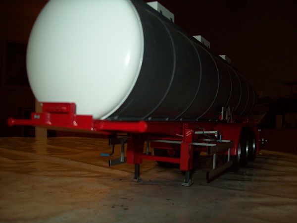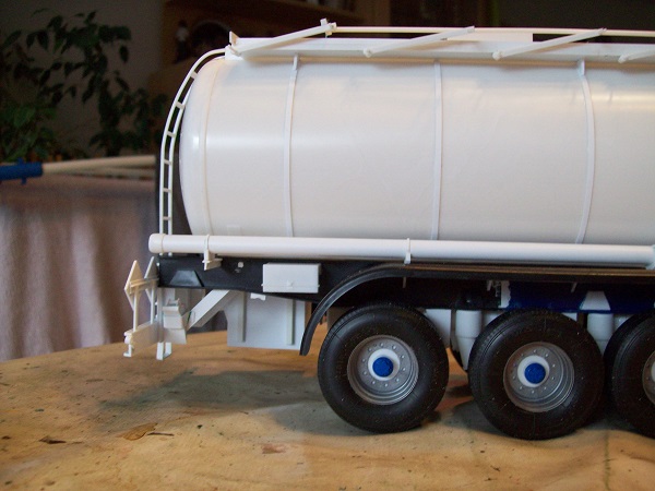 ... die Achsen habe ich neu gebaut, da die Doppelbereifung für meinen "neuen" Auflieger wohl nicht passt. So habe ich dann auch mal ein paar Ersatzradfelgen verbauen können. Hinten kommt die Staukiste, an den Stützen noch Feuerlöscher dran.