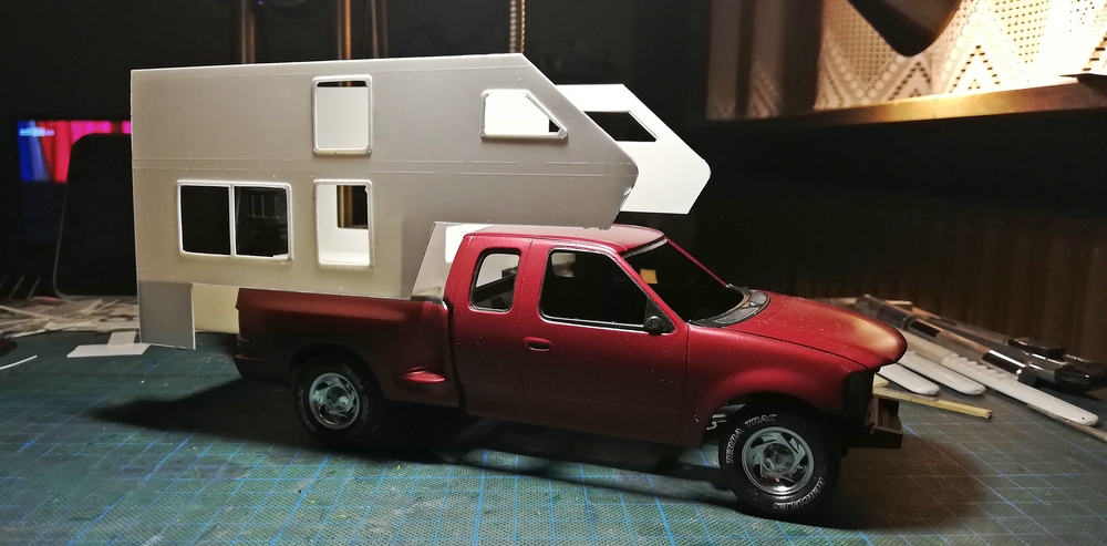 Aber auch eine Stellprobe, mit dem Camper, am Pickup, konnte ich mir doch nicht verkneifen, nun kann man schon sehen wo die Reise hingeht.
