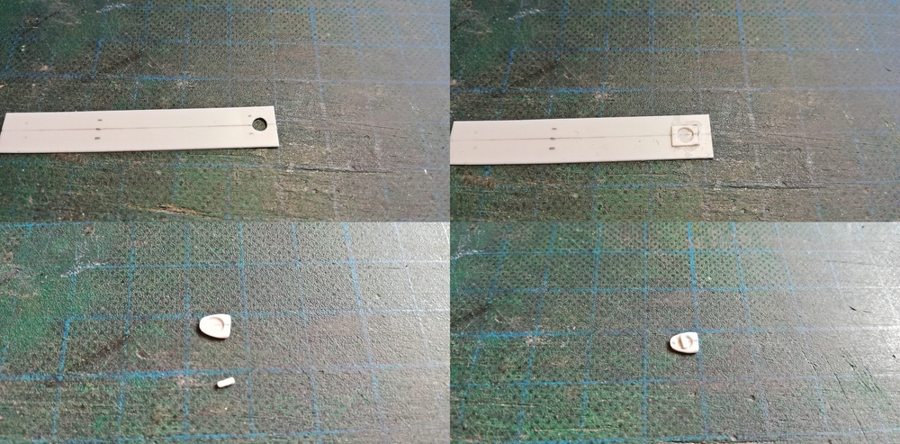 Einen Streifen 0,5mm Sheet einlegen und feste drauf schlagen, geht, prima. Die runden Teile sind danach zwar leicht gebogen, aber auch hier half heißes Wasser, wieder weiter. ;)