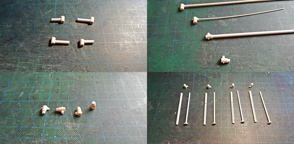 Bevor das nun aber Grundiert werden kann, die Stützen, zum absetzen, gebaut. Da habe ich eine Weile drüber Nachgedacht, wie ich das mache, angefangen bei M2 Gewindestangen, über abnehmbare Wechselstützen, war so ziemlich alles dabei.