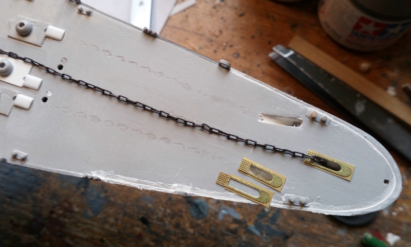 Die Ankerklüsen will ich durchgehen offen gestalten, mit entsprechend an den Ketten befestigten, kompletten Ankern.