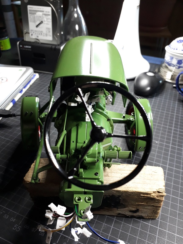 Der Taster, die Betätigung und das Pedal, hat mich beimmontieren (Baustufe 10) schon etwas angek...tzt, und nun ist vermutlich ein feiner Draht ab. Womöglich durch das Vorsichtige geziehe der anderen Kabel Richtung Hinterachse.