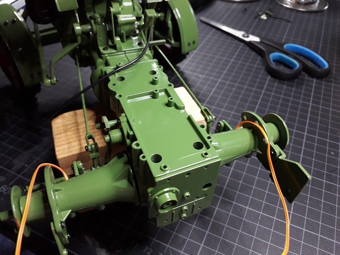 Die Bremswellen an der Hinterachse drappiert und eingehakt. Dann wurde noch ein Hebel, ein Schlauch und eine Schraube angebracht. Für diese Woche wars das.