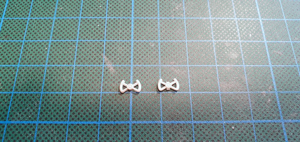 Die ersten beiden Teile sind angeklebt, ein kleiner Tisch für den Mechaniker/Bordingenieur und ein noch kleinerer Tisch für den Funker.