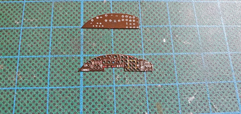 . Ich finde die Eduard Instrumentenpaneele schon immer richtig gut gelungen. Was ich meist noch mache, einen Tropfen KristalKlear in die Instrumente