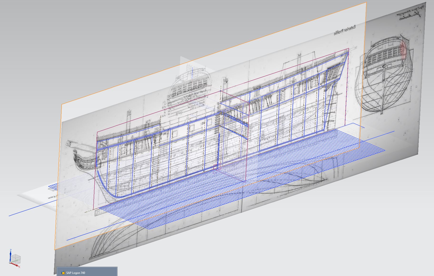Also habe ich hier auch die Pläne ganz genau angeschaut und Längs. u. Querschnitte eingezeichnet um das Heck schön hinzubgekommen. Letztendlich habe ich ein Klasse CAD Modell erstellen können mit dem man super Spanten generieren kann :)