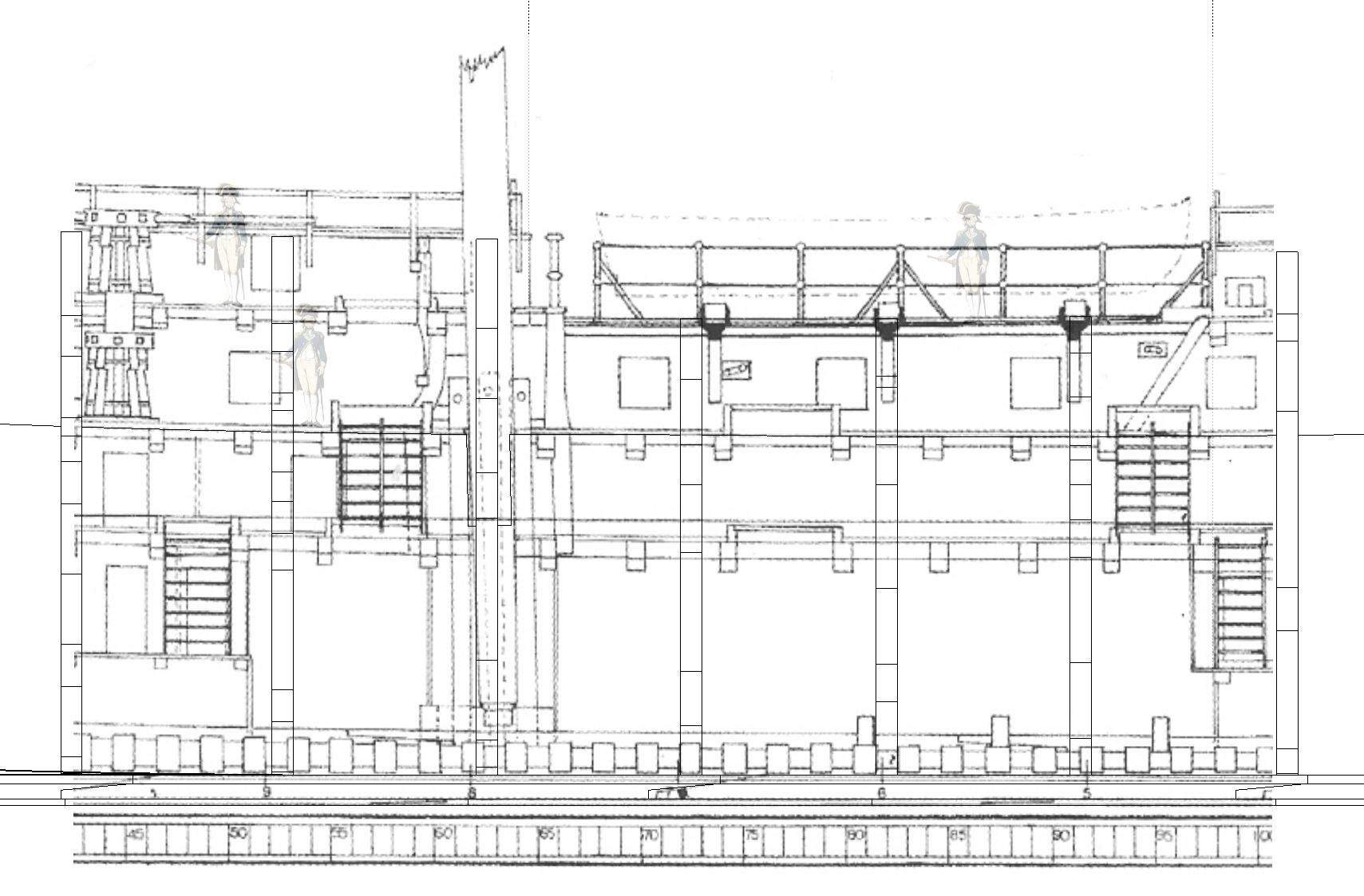 Danach die Zeichenansicht von Rechts und die Schnittansichten. Des Weiteren habe ich auch den Originalplan übergelegt um alles verleichen zu können.