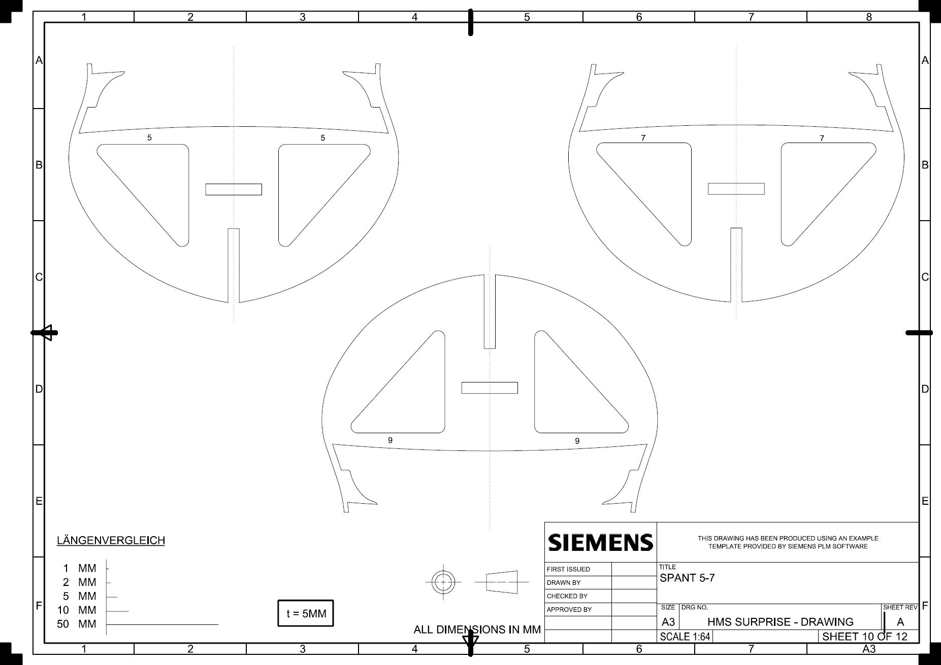 Also habe ich seine Zeichenansicht von Oben genommen und in mein CAD eingefügt. Dank der Fuss Angaben konnte ich die Zeichnung perfekt skalieren. Des Wegen komme ich auf ein paar mm mehr als bei anderen Forumskollegen die die Surprise in Angriff genommen haben.