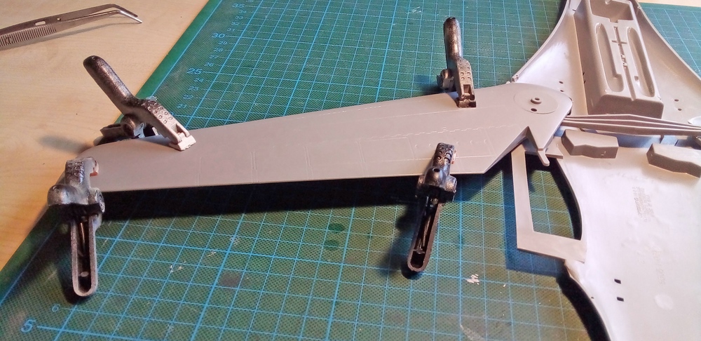 Dann ging es an die rechte Tragfläche und aufpassen das man den Steg, für die Mechanik, der Flügel nicht vergisst.