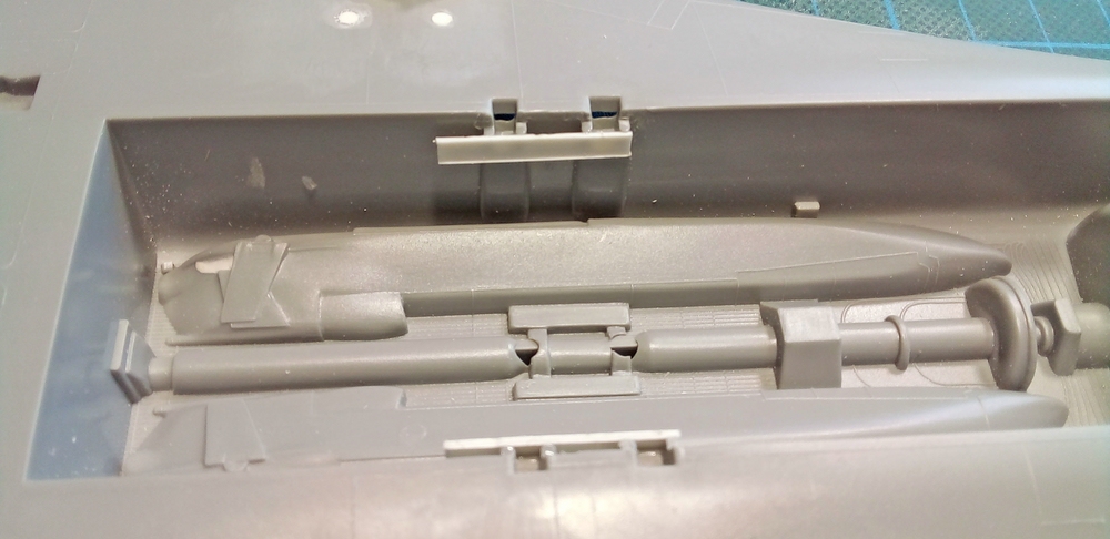 Es gibt einfach keine Möglichkeit, die Klappen geschlossen ein zubauen. Warum? Keine Ahnung. Wer jetzt die Außenlasten anbringen will, wird hier schon Schwierigkeiten bekommen, wer jetzt so wie ich, den Bombenschacht geschlossen haben will, muss entweder auf den After Market, neu mit Sheet selber machen, oder die Klappen umbauen, zurück greifen. :motz: