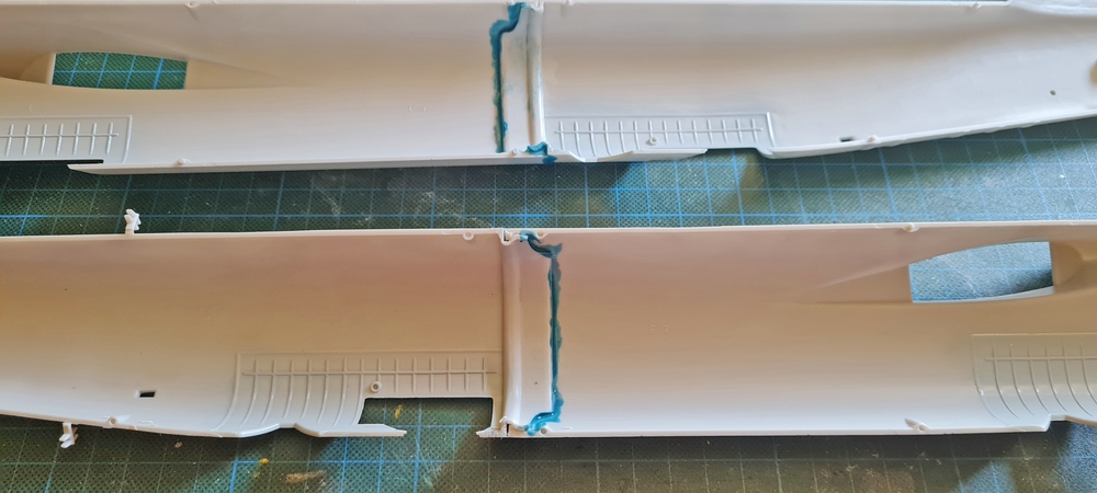 Damit ich dann diese Stellen im Rumpf behandeln kann, hier klafft dann doch ein zu großer Spalt.
