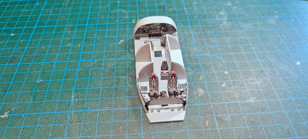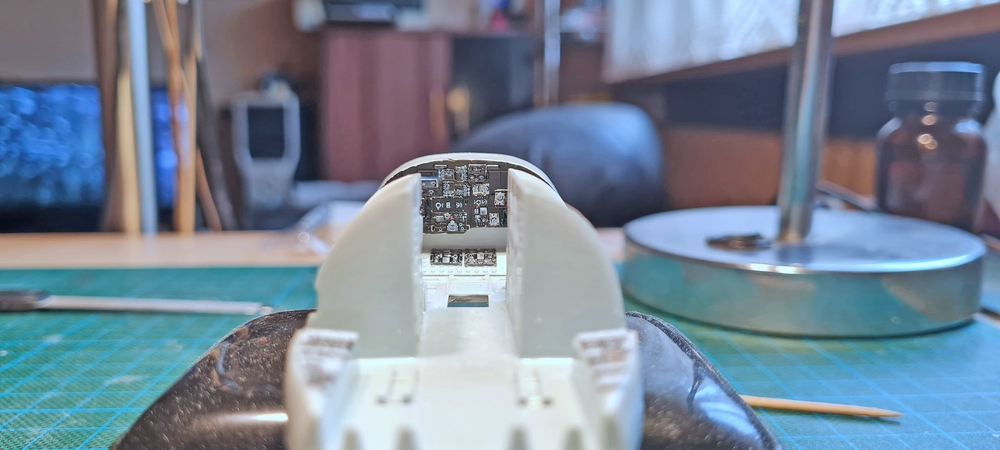Das aber dauert, mehr als eine Stunde, so musste ich mir noch eine weitere Lösung überlegen, aber bis dahin habe ich im hinteren Bereich, der Cockpitsektion weiter gemacht.