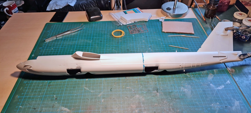 Nachdem das ausgehärtet war, kam nun zusammen was zusammen gehört und die Frage konnte geklärt werden, wie gut passt der Rumpf nun zu einander.