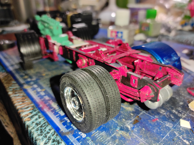 Naja nichts desto trotz möchte ich mir das lange Warten abgewöhnen und setze deshalb mit meinem Volvo fort. Hatte gestern Abend einige Teile wieder ans Chassis angebracht und zusammen geklebt. Verzeiht mir bitte für die schlecht gemachten Bilder. Hatte ich bei Nacht mit Blitz fotografiert.