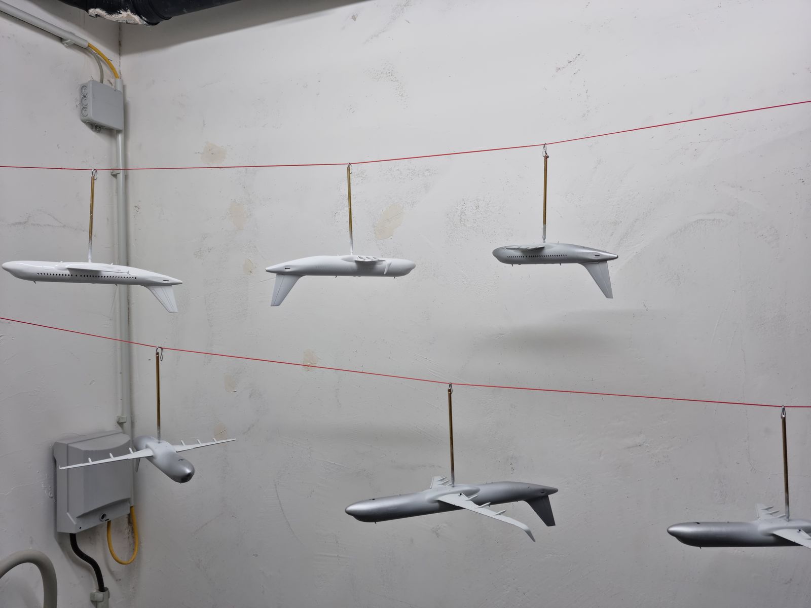 Aber nicht für alle-denn zwei der sechs haben komplett weiße Taragflächen-diese wurden schon im endgültigen Farbton lackiert.