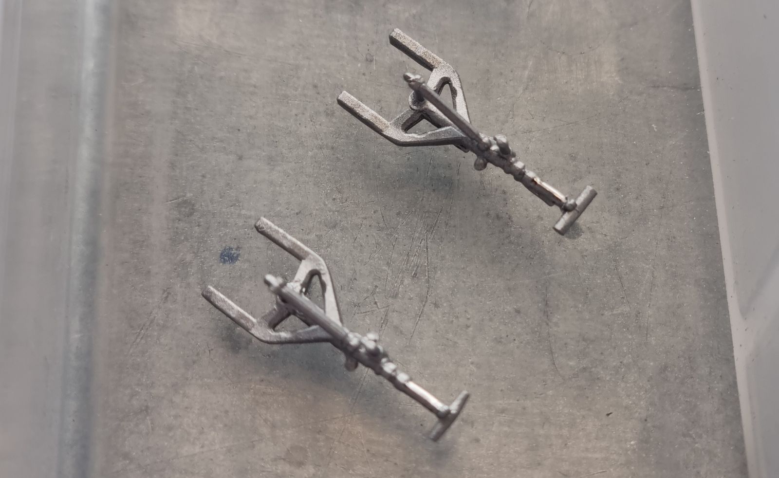 Das Fahrwerk habe ich auch mal zusammengesetzt. Das Bugfahrwerk setzt sich aus fünf, das Hauptfahrwerk aus drei Teilen zusammen.